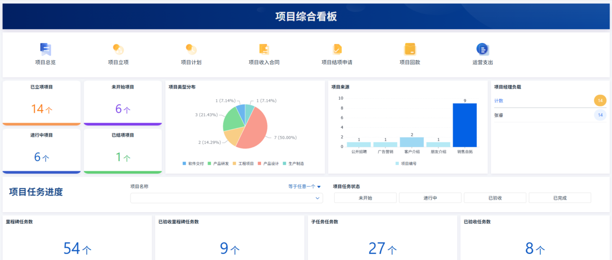 在传统模式下,你要收所有人的周报,汇总成Excel,再分析半天,等你发现问题,黄花菜都凉了。 而在项目管理系统里,数据看板是实时的。你可以一眼看到: