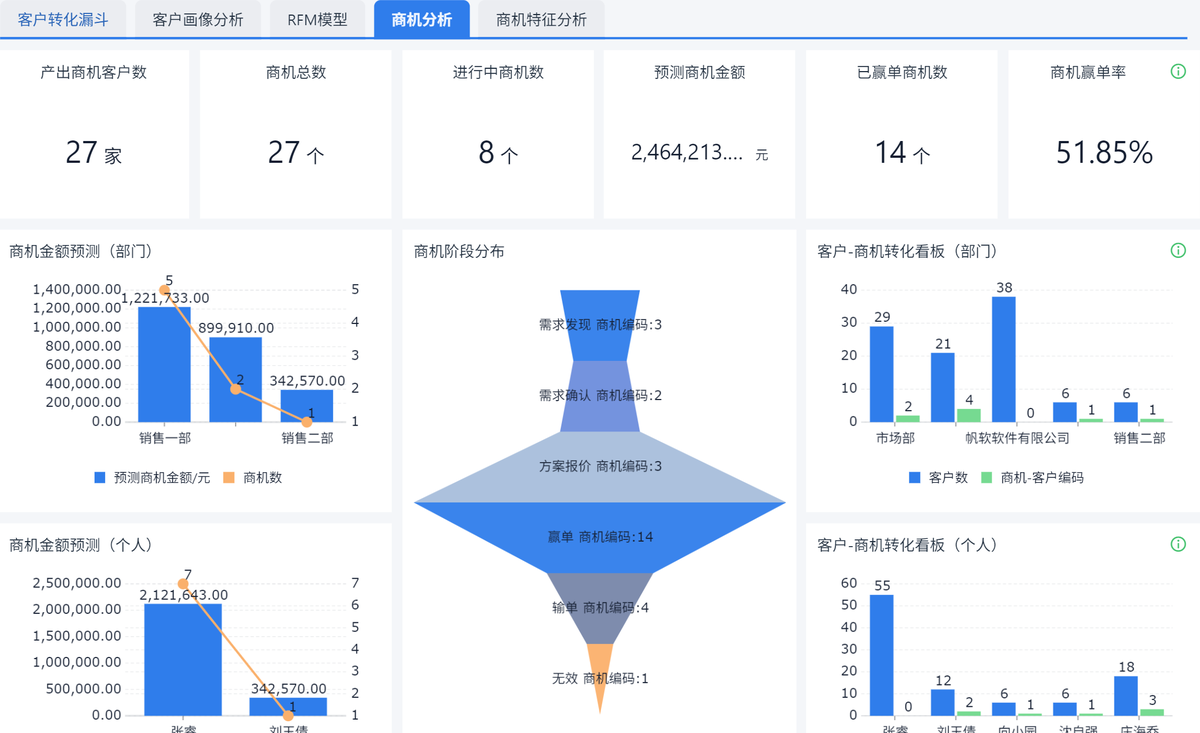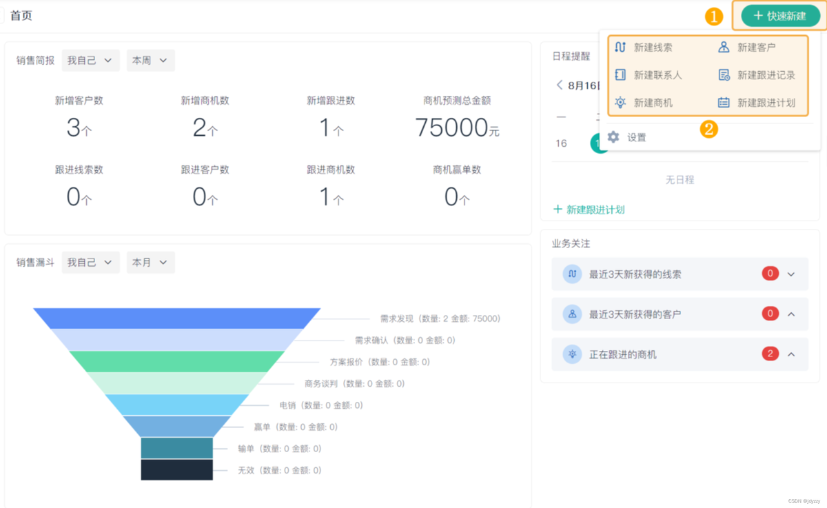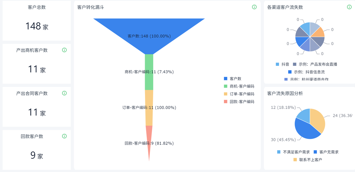 - CRM 支撑: 在 CRM 系统里,每个商机都有阶段标签和阶段更新时间 系统可自动分析商机停留时间、推进次数和成功率,帮助发现问题销售或滞留商机