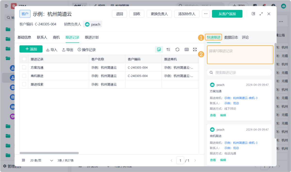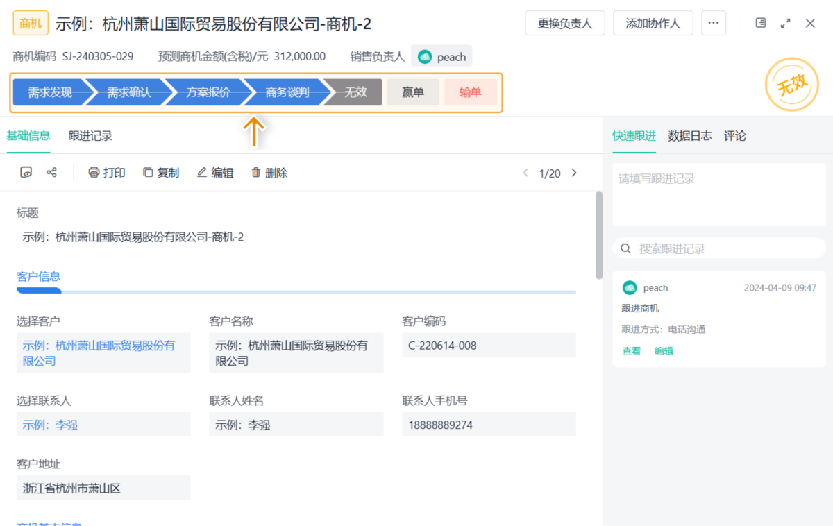 再有效的动作,如果没有记录,团队无法复盘,管理者也无法及时发现问题。CRM 的记录完整性,是动作质量的重要体现。