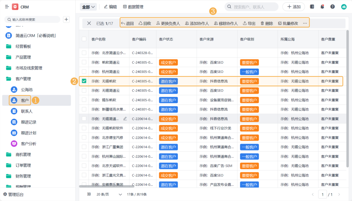 在 CRM 系统里,给客户按潜力打标签(A/B/C 或 高/中/低),然后统计每个销售在不同标签客户上的动作数量