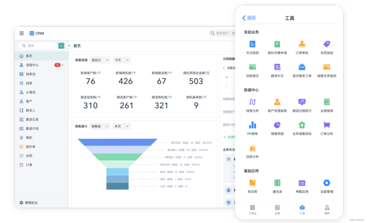 落地建议: CRM 系统可自动统计每个销售的商机转化率、成交金额和利润贡献,并生成周/月报表,便于直接比较和分析。