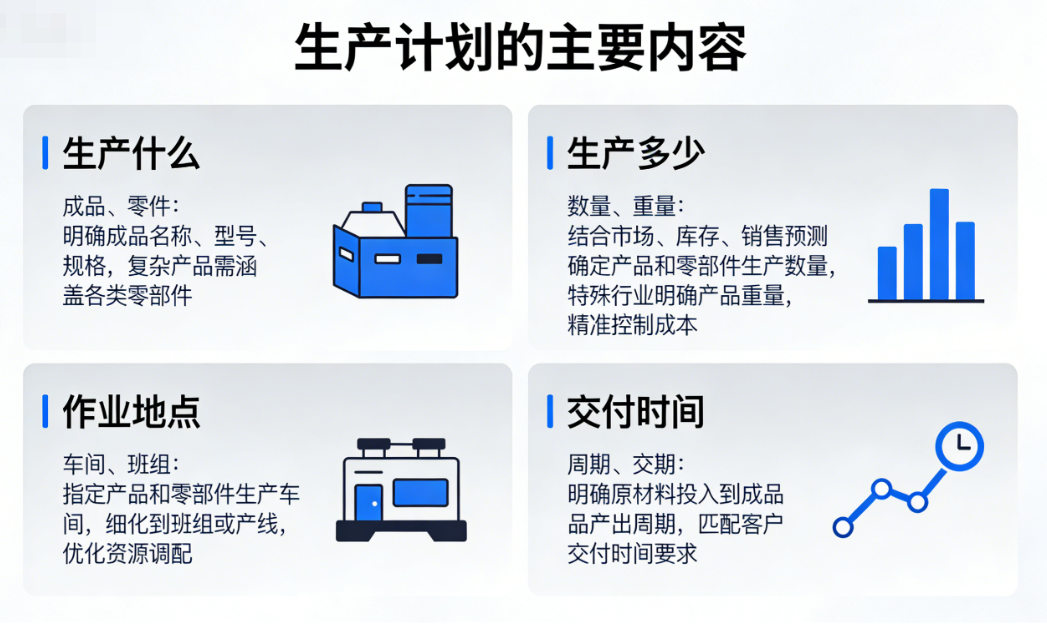 周期即从原材料投入到成品产出的整个时间过程,交期则是客户对产品的交付时间要求。这两个时间维度是生产计划的重要约束条件。