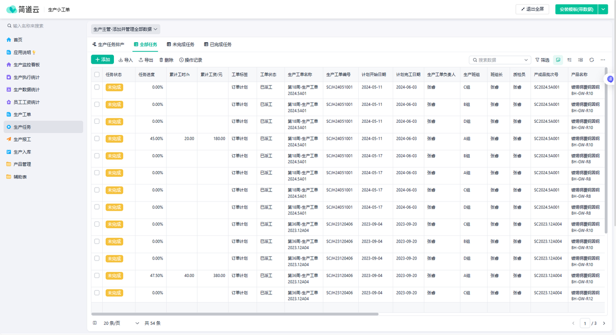 班组长根据生产计划,在生产任务池中领取属于自己的生产任务并提交生产工单。这个过程类似于“抢单”或“派单”机制,班组长可以看到待处理的任务清单,根据自己的产能情况选择合适的任务。