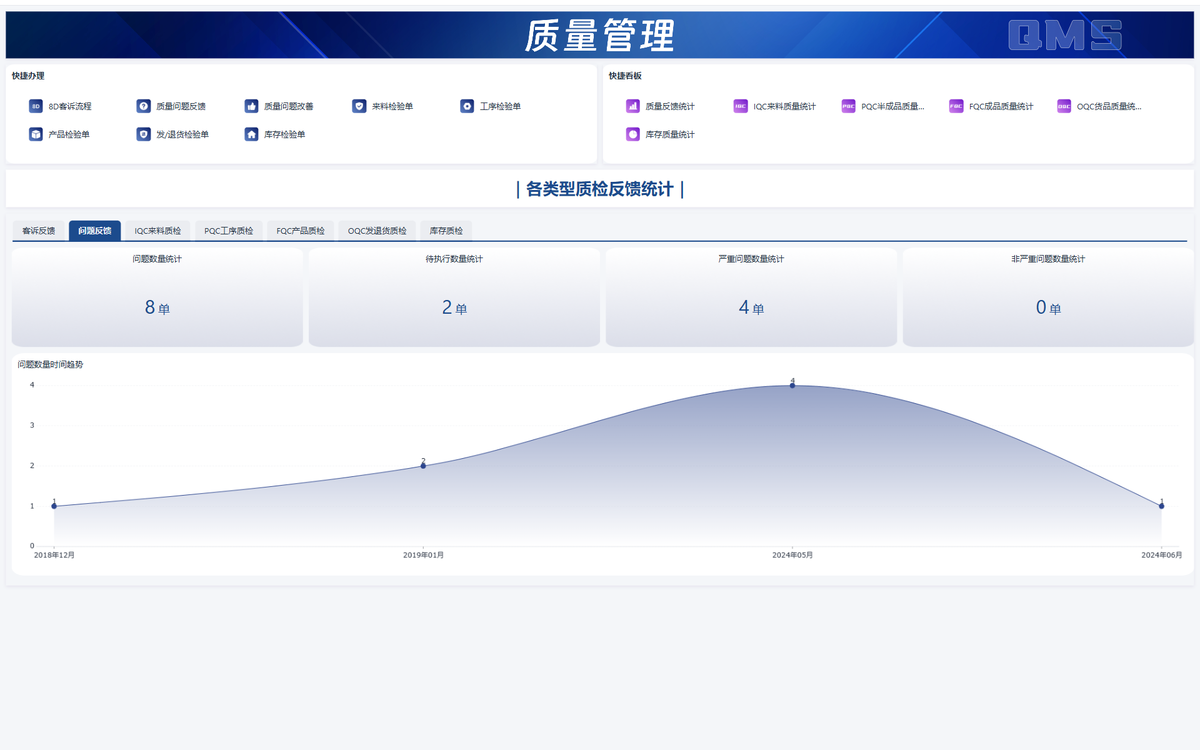 以简道云为代表的零代码平台,为企业提供了灵活的质量管理解决方案。企业可以在平台上搭建质量检验表单,将检验标准嵌入其中,检验人员现场填写数据,系统自动判断是否合格。当出现异常时,系统可以自动触发整改流程,通知相关人员处理。所有质量数据实时汇总到仪表盘,管理者可以随时查看不良率趋势、问题分布、整改完成情况等关键指标。