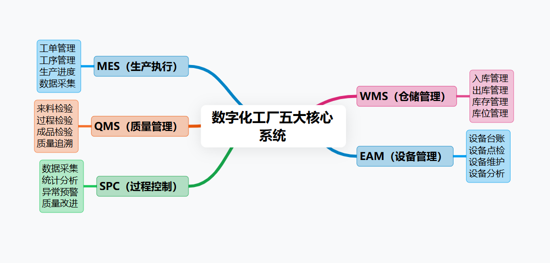 在数字化工厂中,这五类系统并不是孤立存在的,通常会形成一个相互协同的管理体系。