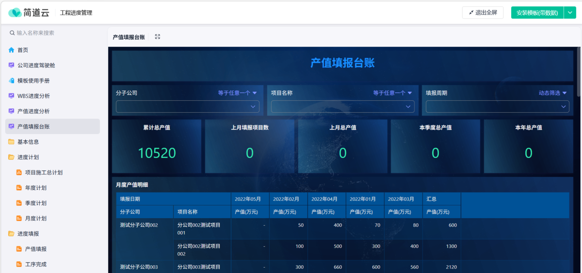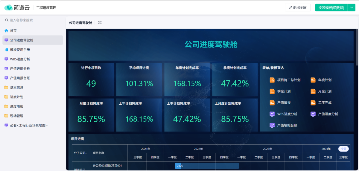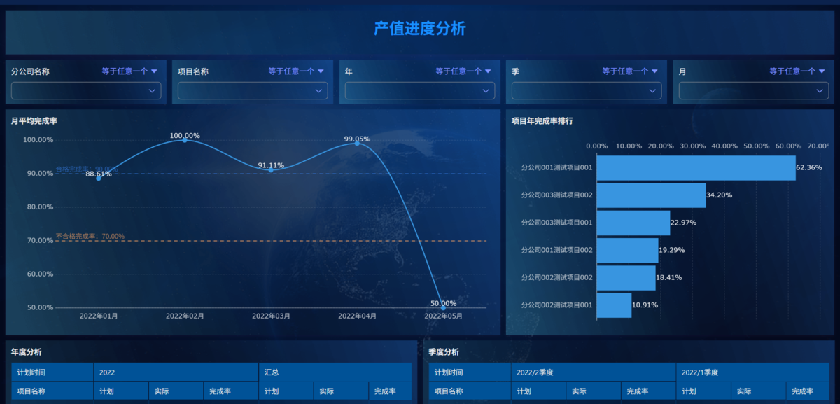 不仅能月/季/年多个维度计算项目的施工计划完成率、完成进度,还可以横向比较各个项目的进度完成率,及时发现异常、突出的项目/分公司。