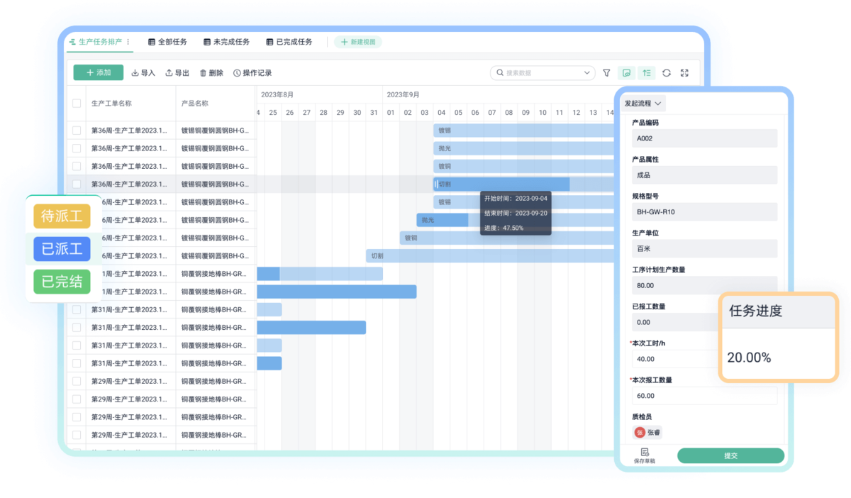 系统从上层计划系统接收生产订单,根据设备能力、物料状况和人员配置,将订单分解为具体的生产工单,并精确排程到每一台设备或产线。当现场出现异常时,系统支持动态调整计划,确保生产连续性和资源利用率最大化。