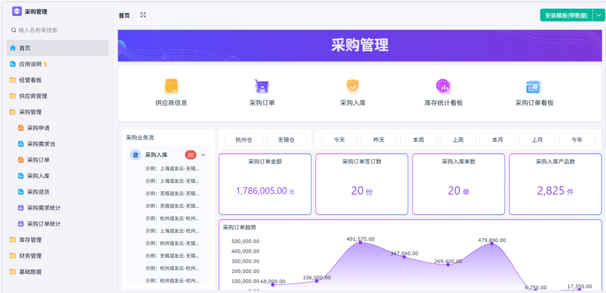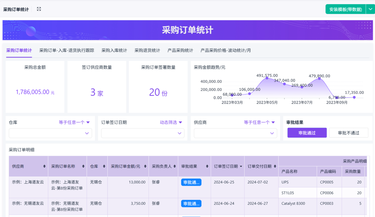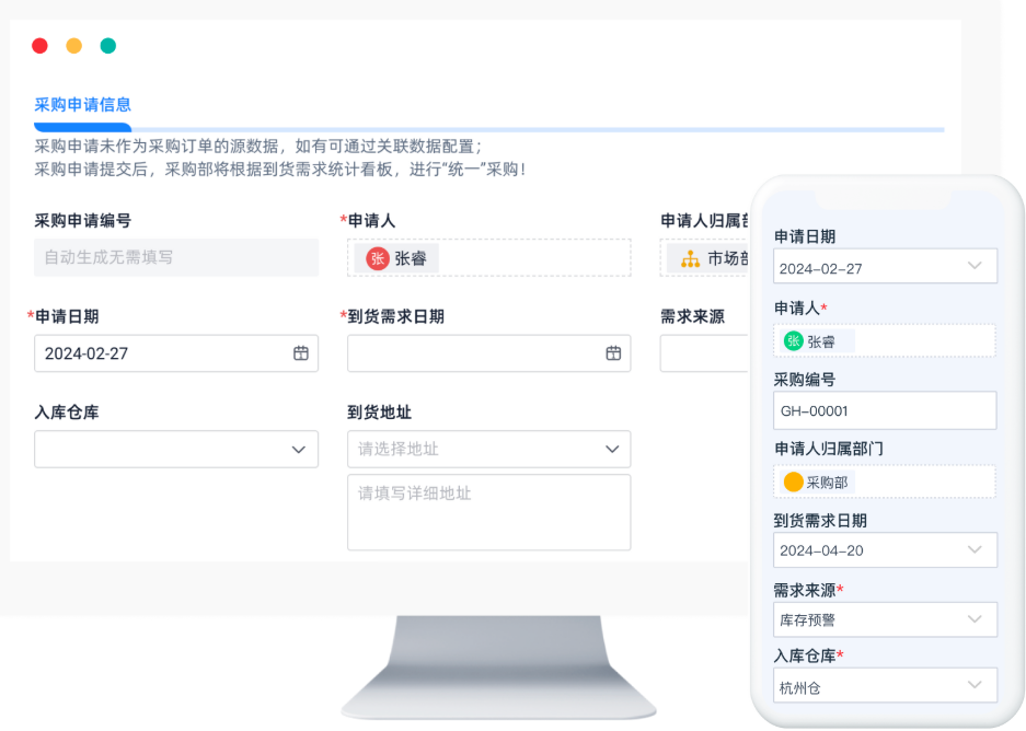 其他流程如采购申请、用采购退货,也按照相同方式搭建,只是字段和审批节点稍有不同。