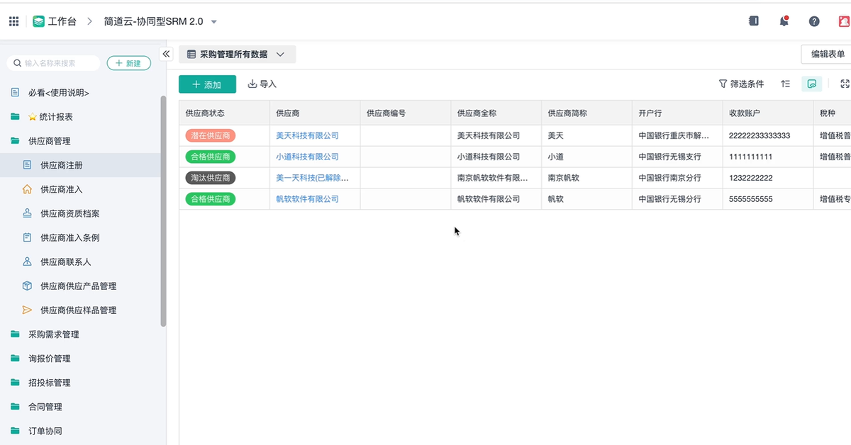 - 所有供应商信息、历史订单、评价指标都上系统