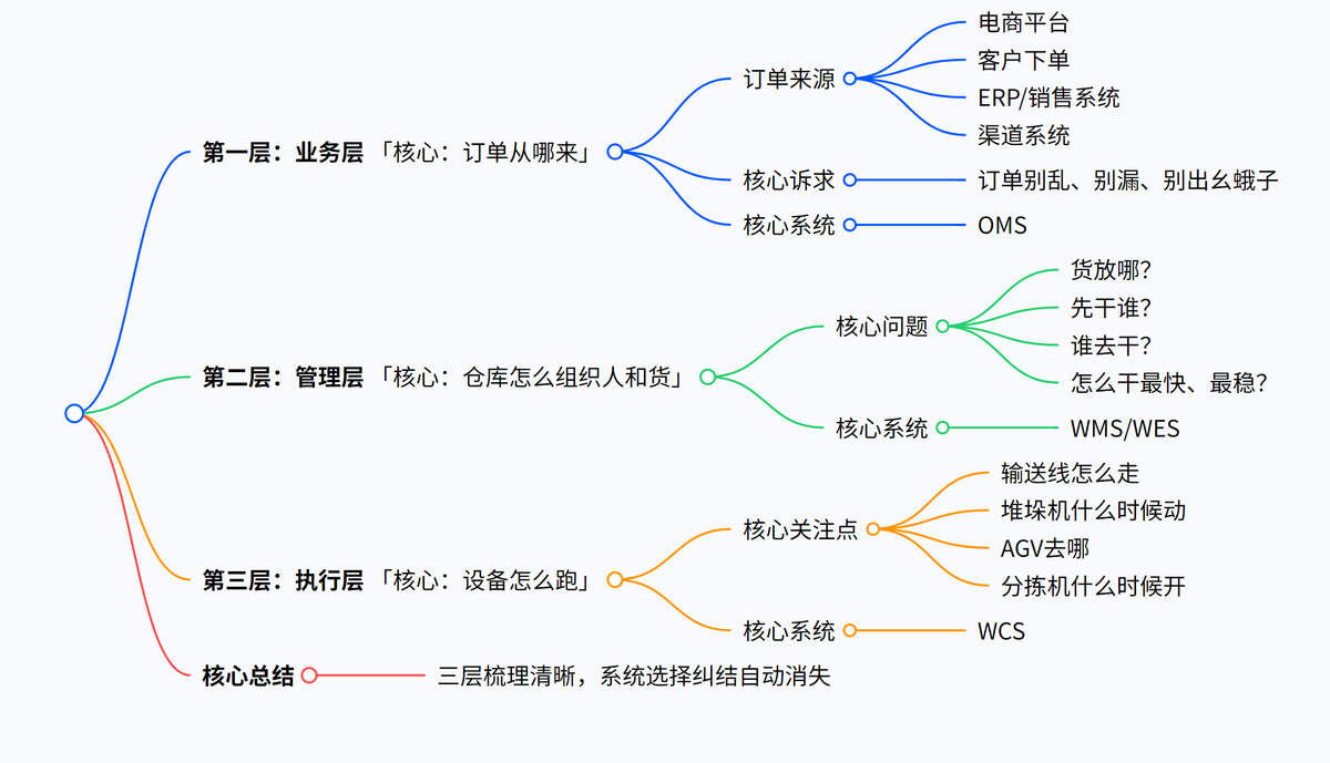 把 OMS、WMS、WCS、WES 这 4 个系统,放回真实仓库场景里,讲清楚: 谁该干什么?什么时候该用?不用行不行?