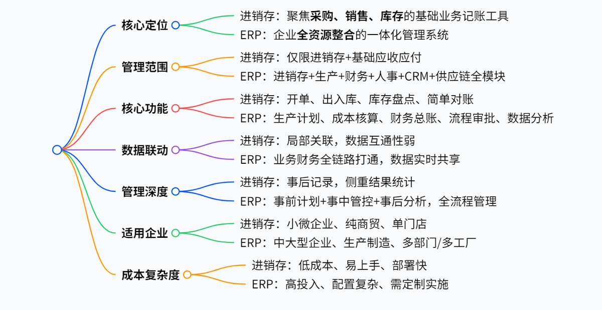进销存是管“买卖”的,适合贸易公司和小型企业,核心管理内容是采购、库存、销售订单。
