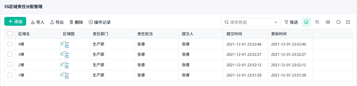 - 每个工位、每个区域的整理、定位、清扫责任都能清楚记录