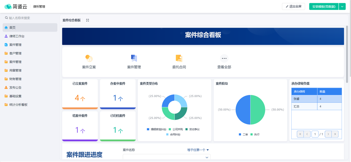 1. 简道云律师管理系统(接下来是个乐高式的选手)