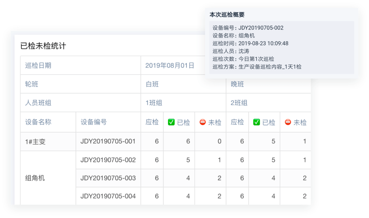 - 快速报工:少操作步骤就能完成巡检