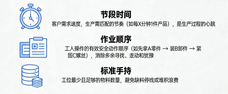 - 节拍时间:这不是机器速度,而是客户需求的速度。简单说,就是客户每X分钟需要一件产品,生产就必须跟上这个节奏。它是整个生产过程的心跳。