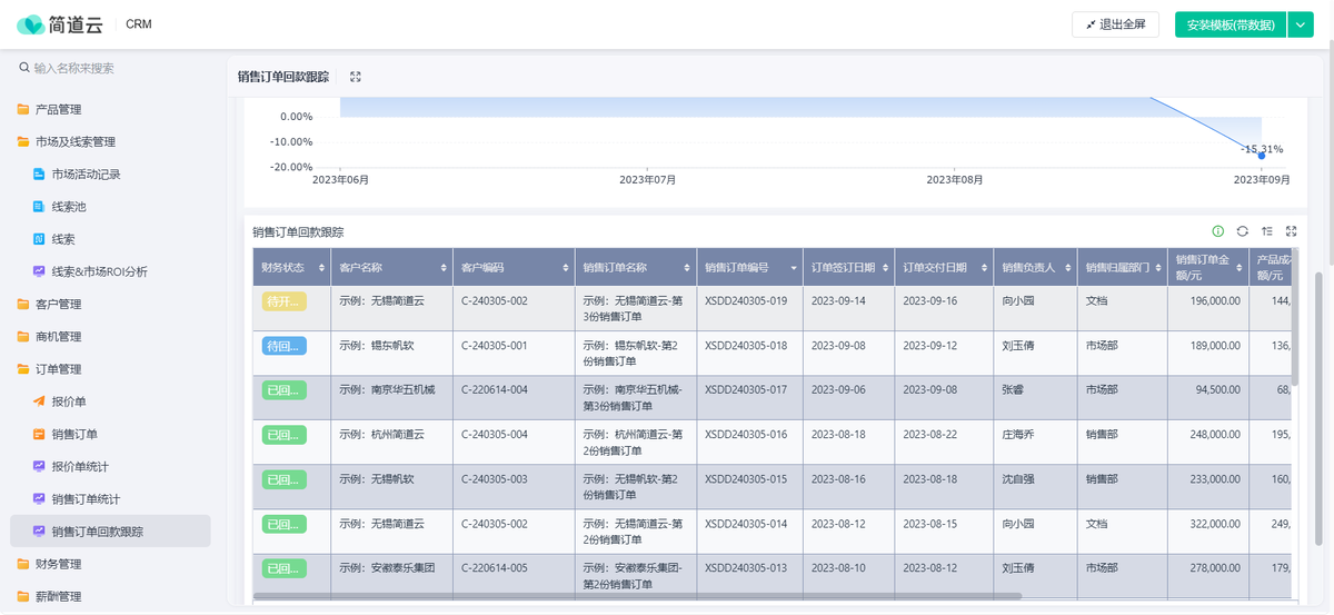 - 商机管理与预测:清晰看到每个销售手上商机的进展、金额和预计成交时间,让销售预测从拍脑袋变为看数据。