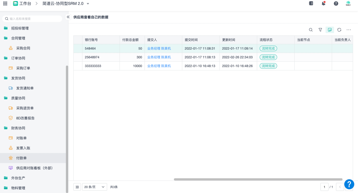 好的 SRM 逻辑,会让付款状态对双方透明: