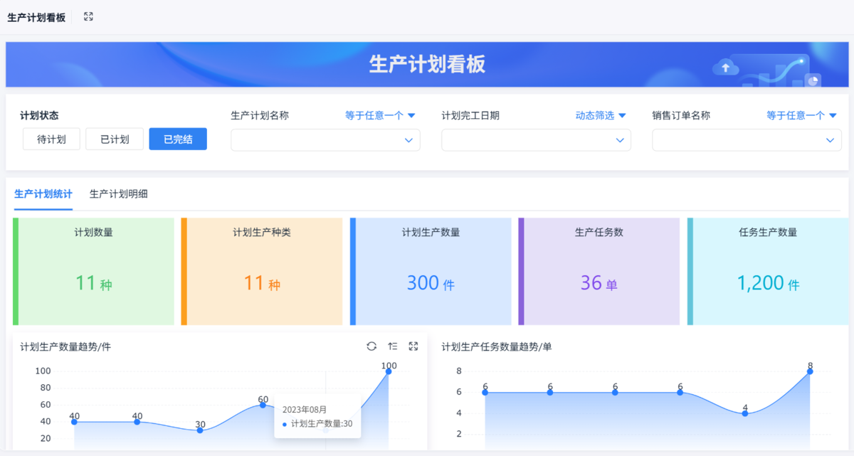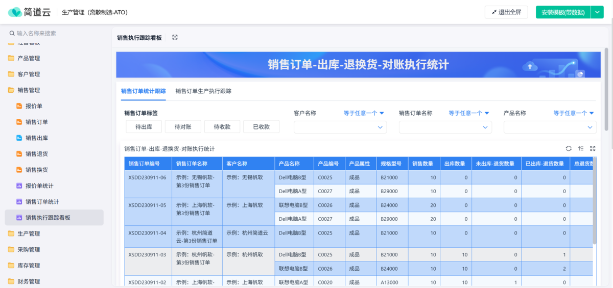 通过【销售管理】>>【销售执行跟踪看板】把前端订单和后端生产直接关联起来