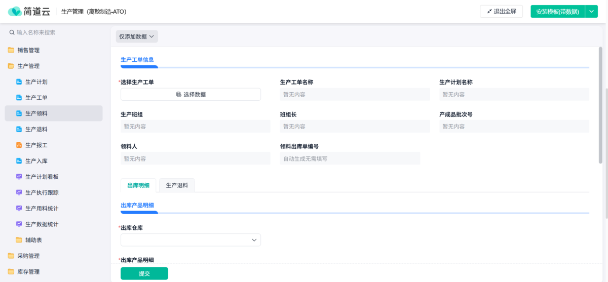 - 领料出库 → 自动形成记录