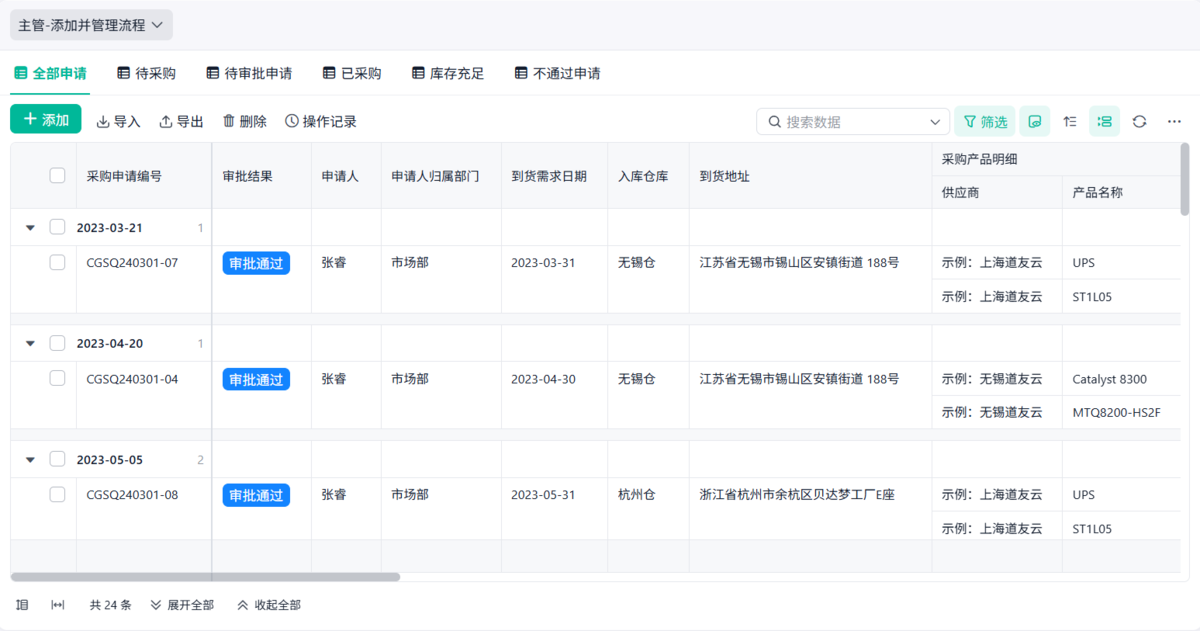 - 每一笔采购都有来源、有审批、有记录