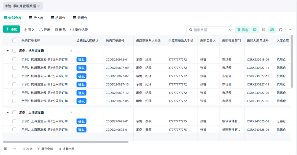 - 采购和仓库开始用同一套数据