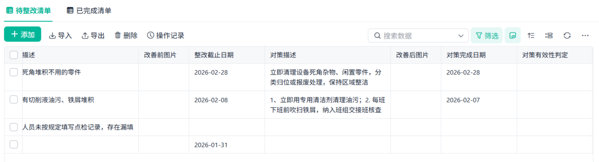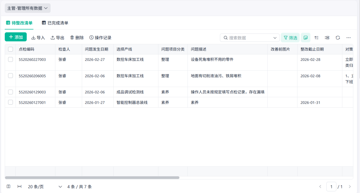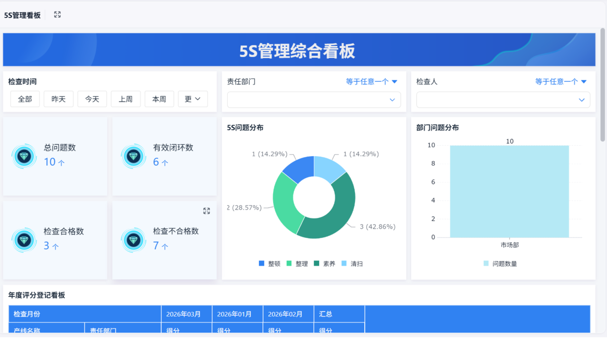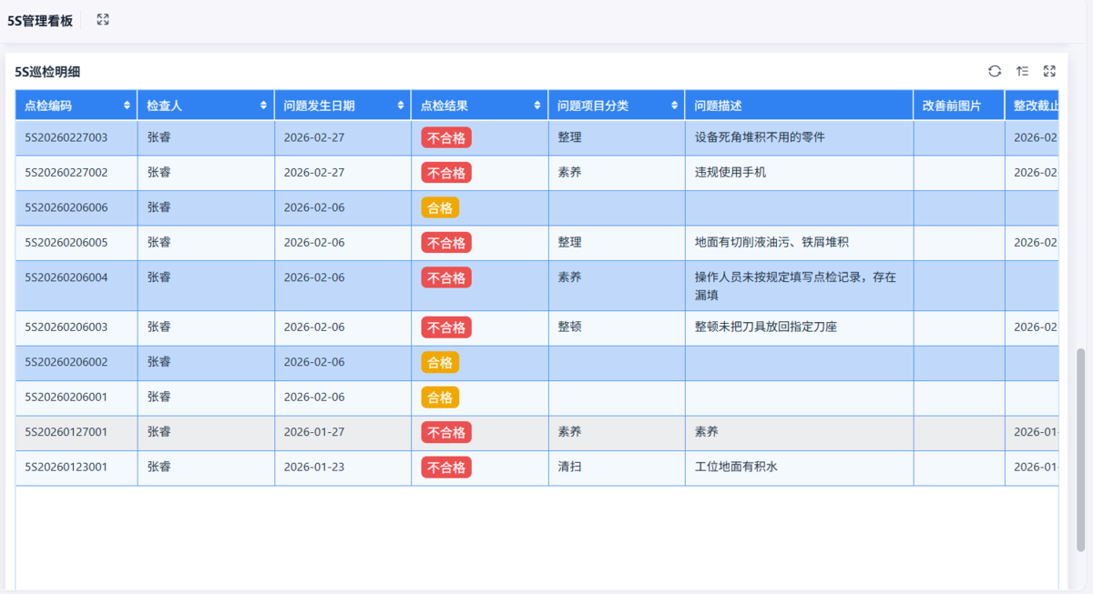 - 问题分类统计(脏乱、物料、设备等)