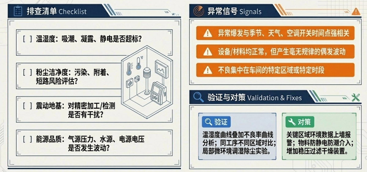 - 把不良与环境记录对齐:温湿度曲线一叠加就很明显