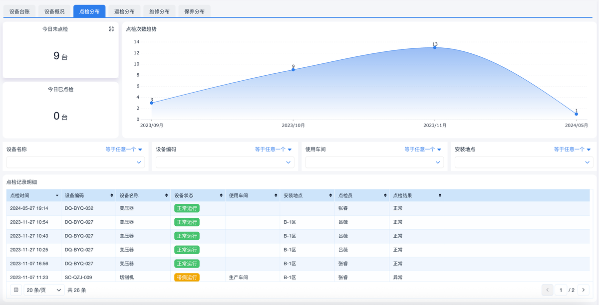 - 维护保养:点检是否到位?关键部位寿命件是否到期?