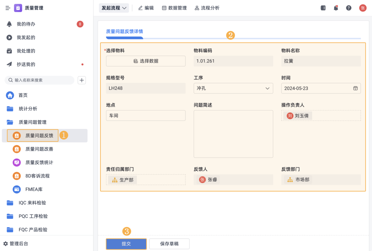 - 涉及生产过程的改善:生成工艺变更任务、培训任务、首件/巡检加严任务