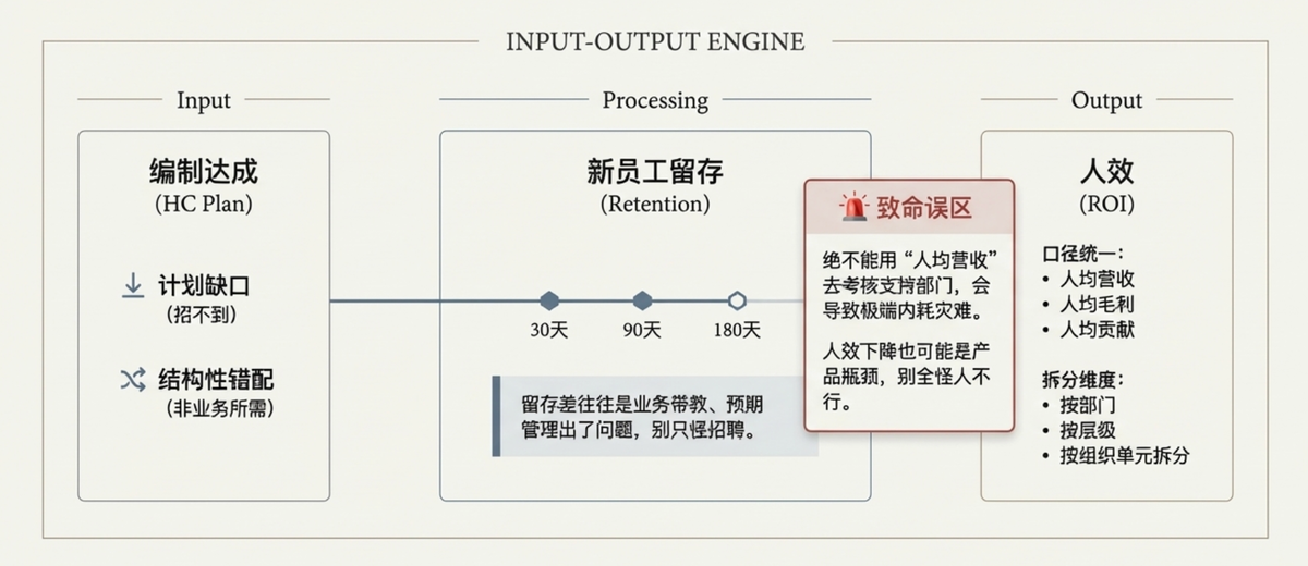 - 编制达成率高也可能是灾难:招满了,但方向错了