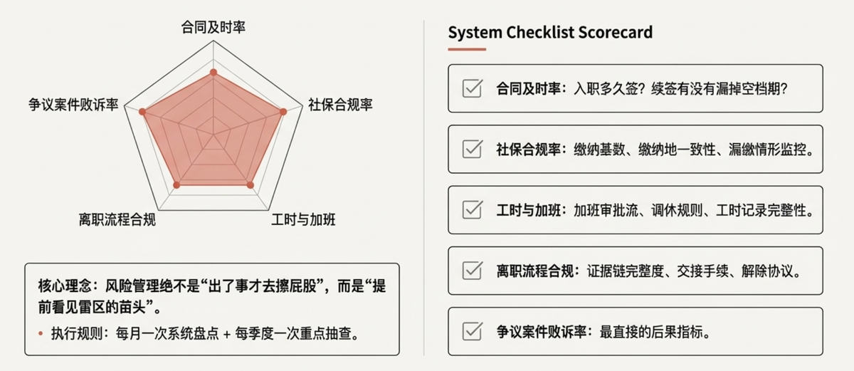 - 劳动争议案件数/败诉率(最直接的后果指标)